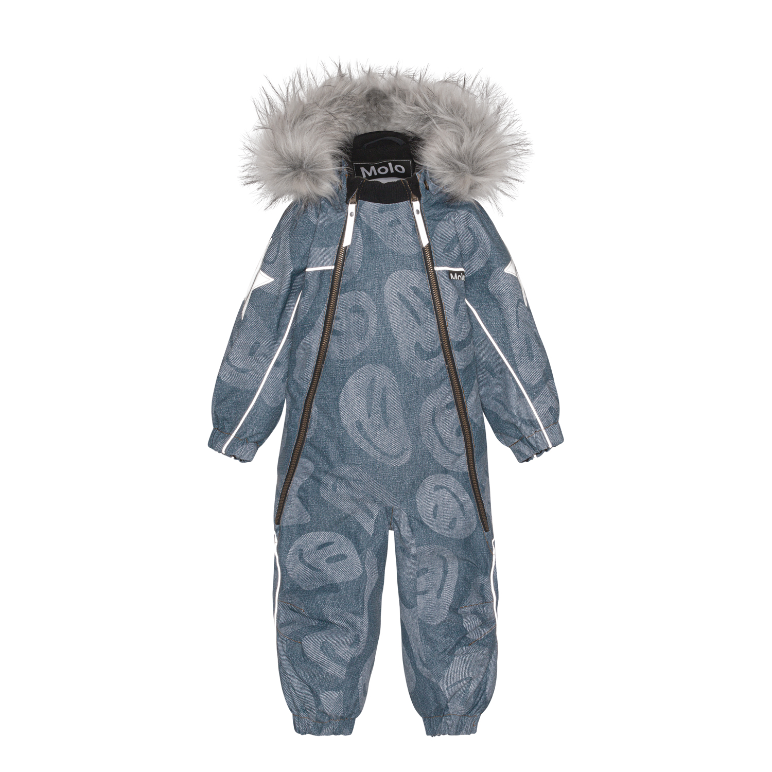 Pyxis is een van Molo's meest bekende en geliefde skipak, die perfect is voor jonge kinderen. Het skipak heeft vele eigenschappen, zoals extreem hoge waterkolomdruk en ademend vermogen en met zijn prachtige prints en kleuren is het elk jaar een echte winnaar. Molo doet geen concessies ten aanzien van details als het gaat om dit skipak, en het is natuurlijk ook gemaakt van verantwoord gerecyclede materialen. Deze Pyxis is denim blauw met verschillende vormen van lachende gezichten