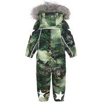Pyxis is een groene functioneel skipak voor baby's en kleine kinderen met een dinosaurusprint. Pyxis is perfect voor extreem koude dagen maar ook voor gewone winterdagen. Het hoog ademend vermogen helpt bij het reguleren van de lichaamstemperatuur van het kind, zodat het niet te koud of oververhit raakt. Op warmere winterdagen kan het kind een dunne onderlaag dragen en op extreem koude dagen kan je een extra laag aantrekken. Ook voor minder actieve momenten is Pyxsis een goede keuze. Het heeft een afneembare capuchon, twee schuine ritsen voor gemakkelijk aankleden, sneeuwflappen aan de pijpen en rubberen bandjes. Pyxis heeft Molo's iconische sterreflectoren op de bovenmouwen en op de achterkant van de pijpen. Het skipak is wind-, waterdicht en ademend. De buitenstof is gemaakt van 45% gerecycled polyester, de 3M™ Thinsulate™ voering is gemaakt van 83% gerecycled polyester en de binnenstof is gemaakt van 100% gerecycled nylon. Het skipak heeft getapete naden. Dit product heeft een waterbestendige, PFC-vrije oppervlaktebehandeling (Bevat bijvoorbeeld geen PFOS, PFOA, etc). Waterkolomdruk: 15.000 mm. Ademend: 15.000 g/m2/24u.