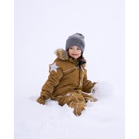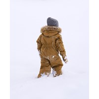 Pyxis is een bruine functioneel skipak voor baby's en kleine kinderen. Pyxis is perfect voor extreem koude dagen maar ook voor gewone winterdagen. Het hoog ademend vermogen helpt bij het reguleren van de lichaamstemperatuur van het kind, zodat het niet te koud of oververhit raakt. Op warmere winterdagen kan het kind een dunne onderlaag dragen en op extreem koude dagen kan je een extra laag aantrekken. Ook voor minder actieve momenten is Pyxsis een goede keuze.Het heeft een afneembare capuchon, twee schuine ritsen voor gemakkelijk aankleden, sneeuwflappen aan de pijpen en rubberen bandjes. Pyxis heeft Molo's iconische sterreflectoren op de bovenmouwen en op de achterkant van de pijpen. Het skipak is wind-, waterdicht en ademend. De buitenstof is gemaakt van 59% gerecycled nylon, de 3M™ Thinsulate™ voering is gemaakt van 83% gerecycled polyester en de binnenstof is gemaakt van 100% gerecycled nylon. Het skipak heeft getapete naden. Dit product heeft een waterbestendige, PFC-vrije oppervlaktebehandeling (Bevat bijvoorbeeld geen PFOS, PFOA, etc). Waterkolomdruk: 15.000 mm. Ademend: 15.000 g/m2/24u.