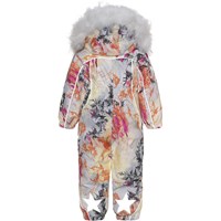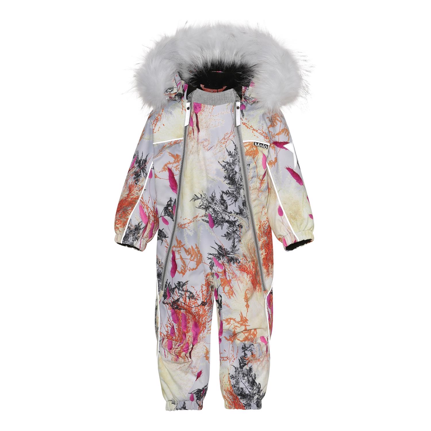 Pyxis is een lichtblauwe functionele skipak voor baby's en kleine kinderen met een print van kleurrijke takken. Het heeft een afneembare capuchon en twee schuine ritsen aan de voorkant waardoor het aan- en uittrekken gemakkelijk is. Het heeft sneeuwflappen bij de pijpen en een rubberen band voor onder de voeten. Het heeft Molo's iconische sterreflectoren op de bovenkant van de mouwen en op de achterkant van de pijpen. Het skipak is gemaakt van een ademende en wind- en waterdichte stof en de voering en tussenvoering zijn gerecycled en gemaakt van gerecycled polyester. Het skipak heeft getapete naden. Dit product heeft een waterbestendige, PFC-vrije oppervlaktebehandeling (bevat bv. geen PFOS, PFOA, enz.). De waterkolomdruk en het ademend vermogen zijn sterk verbeterd en zijn nu: waterkolomdruk: 15.000 mm en ademend: 15.000 g / m2 / 24 uur.