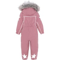 Pyxis is een lichtroze functioneel skipak voor baby's en kleine kinderen. Pyxis is perfect voor extreem koude dagen maar ook voor gewone winterdagen. Het hoog ademend vermogen helpt bij het reguleren van de lichaamstemperatuur van het kind, zodat het niet te koud of oververhit raakt. Op warmere winterdagen kan het kind een dunne onderlaag dragen en op extreem koude dagen kan je een extra laag aantrekken. Ook voor minder actieve momenten is Pyxsis een goede keuze.Het heeft een afneembare capuchon, twee schuine ritsen voor gemakkelijk aankleden, sneeuwflappen aan de pijpen en rubberen bandjes. Pyxis heeft Molo's iconische sterreflectoren op de bovenmouwen en op de achterkant van de pijpen. Het skipak is wind-, waterdicht en ademend. De buitenstof is gemaakt van 59% gerecycled nylon, de 3M™ Thinsulate™ voering is gemaakt van 83% gerecycled polyester en de binnenstof is gemaakt van 100% gerecycled nylon. Het skipak heeft getapete naden. Dit product heeft een waterbestendige, PFC-vrije oppervlaktebehandeling (Bevat bijvoorbeeld geen PFOS, PFOA, etc). Waterkolomdruk: 15.000 mm. Ademend: 15.000 g/m2/24u.