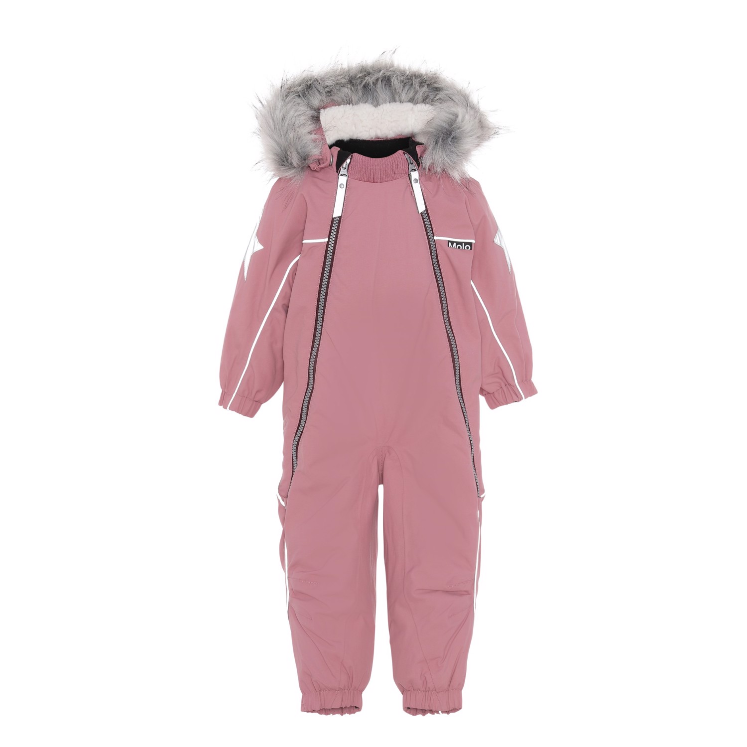 Pyxis is een lichtroze functioneel skipak voor baby's en kleine kinderen. Pyxis is perfect voor extreem koude dagen maar ook voor gewone winterdagen. Het hoog ademend vermogen helpt bij het reguleren van de lichaamstemperatuur van het kind, zodat het niet te koud of oververhit raakt. Op warmere winterdagen kan het kind een dunne onderlaag dragen en op extreem koude dagen kan je een extra laag aantrekken. Ook voor minder actieve momenten is Pyxsis een goede keuze.Het heeft een afneembare capuchon, twee schuine ritsen voor gemakkelijk aankleden, sneeuwflappen aan de pijpen en rubberen bandjes. Pyxis heeft Molo's iconische sterreflectoren op de bovenmouwen en op de achterkant van de pijpen. Het skipak is wind-, waterdicht en ademend. De buitenstof is gemaakt van 59% gerecycled nylon, de 3M™ Thinsulate™ voering is gemaakt van 83% gerecycled polyester en de binnenstof is gemaakt van 100% gerecycled nylon. Het skipak heeft getapete naden. Dit product heeft een waterbestendige, PFC-vrije oppervlaktebehandeling (Bevat bijvoorbeeld geen PFOS, PFOA, etc). Waterkolomdruk: 15.000 mm. Ademend: 15.000 g/m2/24u.