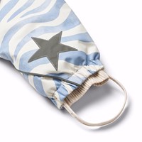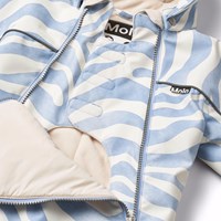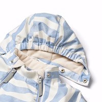 Skipak van gerecycled polyester voor een koude winter met een print in lavendelblauw en off- white zebra strepen Het skipak heeft een afneembare capuchon met fleece, twee ritsen met fleece-gevoerde kinbeschermers om te voorkomen dat de huid beschadigd. Het heeft een binnenwindflap en elastiek in de taille, mouwen en pijpopeningen om sneeuw, regen en wind buiten te houden. Het pak heeft reflectoren langs de zijnaden, rond de capuchon en grote ster-vormige reflectoren op zowel de mouwen als de pijpen om de zichtbaarheid in het verkeer te vergroten. Het pak is gevoerd met 3M™ Thinsulate™, wat zorgt voor meer bewegingsvrijheid voor je kind.