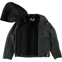 Holtti is een donkergroen leren jas met een afneembare capuchon. De capuchon is eenvoudig aan te brengen en maakt hem geschikt voor veel verschillende situaties. Holtti heeft een ritssluiting en zakken.