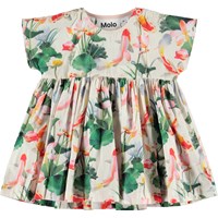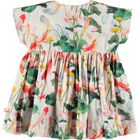 Channi is een poplin babyjurkje met de 'Lotus Koi’ print, een Japans geïnspireerde print met prachtige vissen en lotusbloemen. Channi valt ruim en heeft drukknopen op de schouders.