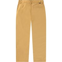 Lichtbruine chino van biologisch katoen. De chino heeft twee steekzakken, een normale pasvorm en sluit met een haakje. De tailleband kan worden aangepast met een interne elastiek, waardoor er een perfecte pasvorm voor alle kinderen wordt gegarandeerd.