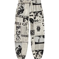 Gekleurde joggingbroek van biologisch katoen met een elastische taille, koordjes aan de binnenkant, elastiek aan de enkels en zijzakken. De broek heeft een normale pasvorm en een all-over print met de tekst "Everything you can Imagine is Real". De tekst is vervaagd en gebogen, en lijkt op tekst op oude schermen, je kunt rode en groene tinten aan de randen zien. De broek heeft een gevoerde binnenkant, waardoor het zacht en warm is om te dragen.