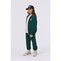 Donkergroene joggingbroek met een print van een witte peace teken. Deze joggingbroek is gemaakt van 100% katoen en heeft een elastische taille met koordjes. Het heeft elastiek bij de enkels, steekzakken en een achterzak. De joggingbroek heeft een normale pasvorm. Voor de perfecte set draag je het met de bijpassende Mar sweater die van dezelfde kleur is.