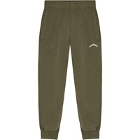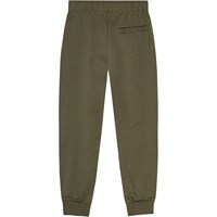 Donkergroene joggingbroek van biologisch katoen met een elastische tailleband en koordjes, geribbelde boorden rond de enkels, zijzakken en een achterzak. De broek heeft een normale pasvorm en het woord "Imagine" is in zwart-wit op het bovenbeen gedrukt. De broek heeft een gevoerde binnenkant, waardoor het zacht en warm is om te dragen.