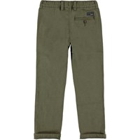 Aesy is een kakigroene chino broek met zakken en koordjes in de taille.