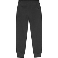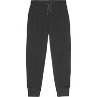 Zwarte biologische katoenen joggingbroek met koordjes en geribbelde tailleband, geribbelde boorden, verborgen ritszakken aan de zijkanten en een achterzak. De broek heeft een nauwsluitende pasvorm en een gevoerde binnenkant voor extra zachtheid en warmte.