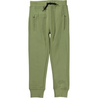 Mosgroene joggingbroek van zachte katoen/polyestermix met een zwart koordje en ribboord in de taille. Het heeft ribboord bij de pijpen en steekzakken met een verborgen ritssluiting. De joggingbroek heeft een achterzak en heeft een ruimvallende pasvorm. Voor een perfecte set kun je het combineren met het Magni sweater die dezelfde kleur heeft.