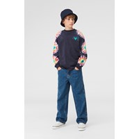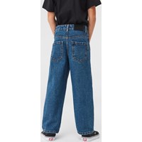 Aiden is de nieuwe spijkerbroek van Molo, die een stoere en extra wijde pasvorm heeft, geïnspireerd op de skate wereld. Het heeft een ruime pasvorm en door de wijde pijpen beweeg je er gemakkelijk in. Deze jeans heeft een licht verwassen blauwe kleur. De taille is met een elastiek aan de binnenkant te verstellen voor een goede pasvorm voor elk kind. Aiden is gemaakt van 100% katoen, waardoor het extra duurzaam is. Let op: de maten t/m 134 hebben een drukknoop en geen jeansknoop.