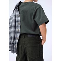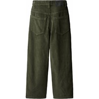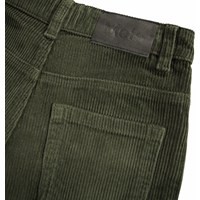 Grijze broek van geribbeld ribfluweel met vijf zakken, wijde pijpen en een ritssluiting. De broek is geïnspireerd op de skatescene en heeft een relaxte ruimvallende pasvorm.