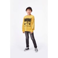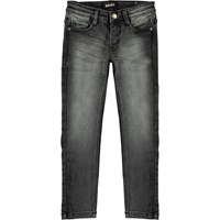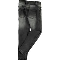 Aksel is een slim fit jeans in een verwassen zwart. Let op: maten t/m 134 hebben een drukknoop en geen jeansknoop.