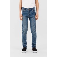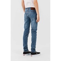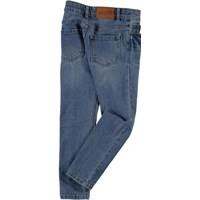 Aksel is een blauwe slim fit spijkerbroek. Het heeft een beetje stretch waardoor het comfortabel is en makkelijk om in te bewegen. Let op: de maten t/m 134 hebben een drukknoop en geen jeansknoop.