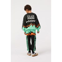 Joggingbroek van biologisch katoen. De broek heeft een verstelbare elastische taille, steekzakken, een enkele achterzak, elastiek bij de enkels en een normale pasvorm. De broek is lichtgroen en zwart met motocrossdetails en de tekst 'Freedom' op de pijp. Voor een complete outfit combineer je het met een bijpassende sweater.