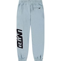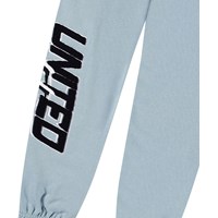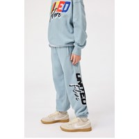 Lichtblauwe katoenen joggingbroek. De broek heeft een verstelbare elastische taille, zijzakken, een enkele achterzak en elastiek bij de enkels. Het heeft een normale pasvorm en een geprint design op één pijp met de tekst 'United Future'.Deze broek heeft een ongeborstelde binnenkant, waardoor het koel is op een warme dag. Voor een complete outfit combineer je het met de bijpassende sweater Mar.
