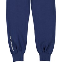 "Start a movement" met Alvar, wat het gemakkelijk maakt om te bewegen maar er nog steeds cool uitziet. Alvar is een blauwe joggingbroek met een elastische taille en de "Start a movement" print op de voor- en achterkant.