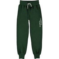 Alvar is een groene sportieve joggingbroek met op een pijp in het wit geborduurde coördinaten die Molo's locatie laten zien. Het heeft een brede elastische tailleband en zakken met ritssluiting.