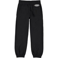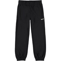 Am is een zwarte joggingbroek met een Molo logo op de voorkant en 'One world' geprint op de achterzak. Het heeft een elastische taille en pijp openingen.