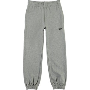 Am is een zwarte joggingbroek met een Molo-logo op de voorkant en 'One world' geprint op de achterzak. Ze hebben een elastische taille en beenopeningen.