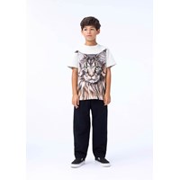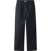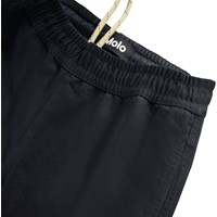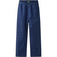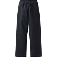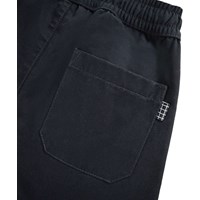 Zwarte chino broek gemaakt van biologisch katoen met een elastische taille en interne koord. De broek heeft zijzakken en een ruimvallende pasvorm.