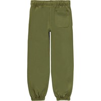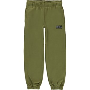 Ams is een groene joggingbroek met op de voorkant het Molo logo. Het heeft een elastische boord rond de taille en pijpen.