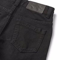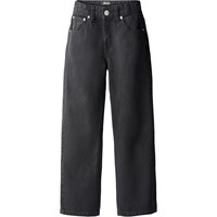 Zwarte biologische katoenen jeans met rechte pijpen, zijzakken, achterzakken en een normale pasvorm.