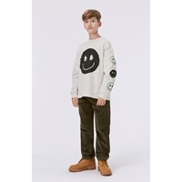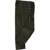 Donkergroene broek in corduroy van walnoothout. Deze jeans is gemaakt van rekbaar katoen, dus het zit erg comfortabel. Het heeft steekzakken, achterzakken en een normale pasvorm. De taille kan worden aangepast met elastiek aan de binnenkant, zodat het perfect bij alle kinderen past. Maten 92-134 hebben een druk voor het gemakkelijk aan- en uittrekken. Maten 140-176 hebben een gewone jeansknoop.