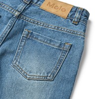 Blauwe jeans van biologisch katoen. Deze jeans heeft rechte pijpen, zijzakken, achterzakken en een normale pasvorm.