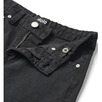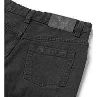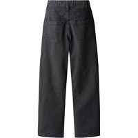 Zwart gewassen denim jeans van biologische katoen. De broek heeft 5 zakken en een normale, losse pasvorm. De taille is verstelbaar met een elastiek aan de binnenkant voor een optimale pasvorm voor elk kind. Maten 92–134 hebben een drukknoop voor gemakkelijk aan- en uittrekken, terwijl maten 140–176 een gewone jeansknoop hebben.