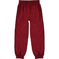 Anomi is een donkerrode trainingsbroek met elastiek rond de taille en pijp openingen. Het heeft een zwarte streep langs de zijkanten van de pijpen. Draag het met het bijpassende trainingsjack.