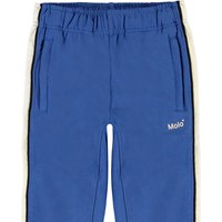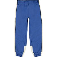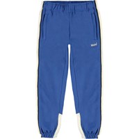 Anoua is een blauwe joggingbroek met witte zijkanten met zwarte biezen en witte details aan de onderkant van elke pijp. Het heeft een elastiek rond taille en pijpen.
