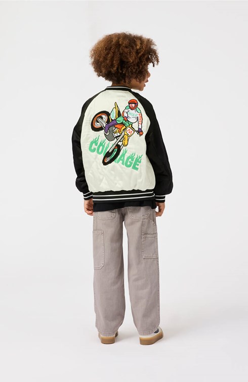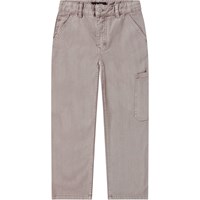 Grijze katoenen cargojeans. De jeans is praktisch en heeft veel zakken, zowel aan de zijkanten als langs de pijpen. Het heeft een ruimvallende pasvorm en kan in de taille worden aangepast met een interne elastiek, waardoor het perfect past bij alle kinderen. De maten 92-134 hebben drukknopen voor het makkelijk aan- en uitrekken, terwijl de maten 140-176 een normale jeansknoop hebben.