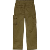 Legergroene cargobroek van biologisch katoen met een elastische taille en koordjes en het heeft een normale pasvorm. De broek heeft achterzakken, zijzakken en een zak op elke dij.