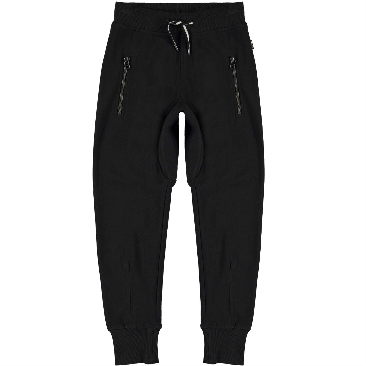 Ashton joggingbroek is een Molo-favoriet omdat het comfortabel is en er geweldig uitzien. Ashton is een zwarte joggingbroek in een losse pasvorm met een brede elastische taille en een comfortabele pasvorm. Het heeft sportieve details zoals gestreepte koordjes en zijzakken met rits.