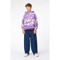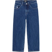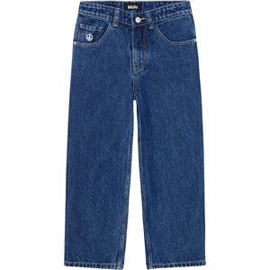 Aska is een donkerblauwe jeans met een peace teken op de zak. De jeans is van een zachte, duurzame katoenkwaliteit. Het heeft zij- en achterzakken en een zeer ruimvallende pasvorm. De tailleband van de jeans heeft een verstelbaar elastiek aan de binnenkant, zodat het bij de meeste kinderen perfect past. Maten 92-134 hebben een drukknoop zodat het makkelijk is aan te trekken, terwijl maten 140-176 een gewone jeansknoop hebben. Deze Molo-stijl heeft een zeer ruimvallende pasvorm. Als je een meer klassieke pasvorm wilt, of als je kind tussen twee maten in zit, raden we je aan een maat kleiner te kiezen dan normaal.
