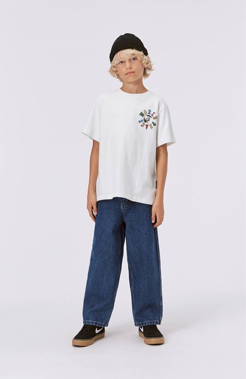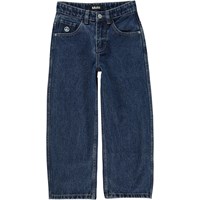 Molo's nieuwe coole en oversized jeans met een peace teken op de zak. Deze jeans is gemaakt van katoen, heeft zijzakken, achterzakken en heeft een oversized pasvorm. De taille kan worden aangepast met elastiek aan de binnenkant, zodat het perfect bij alle kinderen past. Maten 92-134 hebben een drukknoop voor het gemakkelijk aan- en uittrekken. Maten 140-176 hebben een gewone jeansknoop. De meeste materialen in deze stijl zijn gemaakt van biologisch katoen.