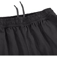 Grijs-zwarte broek gemaakt van zacht biologisch katoen in een relaxte en wijde pasvorm. De broek heeft zijzakken, achterzakken en een elastische taille met een interne koordje die zorgt voor een goede pasvorm.