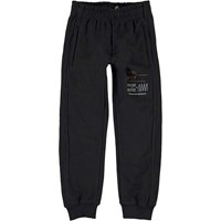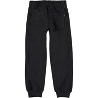 Aubin is een zwarte joggingbroek met Molo's coole "interference" print op één pijp. Het heeft een elastische taille en koordjes aan de binnenkant.