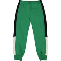 Awer is een groene joggingbroek met zwarte en witte details. Het heet een elastische taille en ribboord aan de pijpen Draag het met een bijpassende sweater.