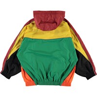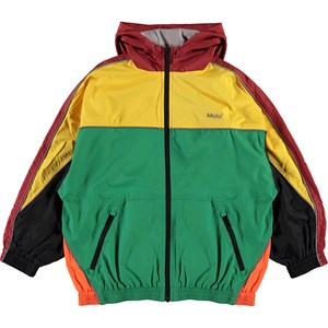 Miirto is een geblokte trainingsjas in geel, rood, groen en oranje. De jas heeft een iets oversized pasvorm.