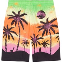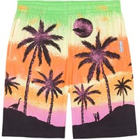Adi is een knielange short van 100% biologisch katoen met een print. De print is een klassiek Hawai motief met een twist, palmbomen en een zonsondergang in zwart, oranje, groen en paars. Misschien kun je een surfende buitenaardse wezen of andere gasten spotten? De short heeft een elastische taille met koordjes aan de binnenkant, steekzakken en het heeft een normale pasvorm. Voor een extra stoere look kun je het dragen met Rui, het bijpassende shirt in dezelfde print.