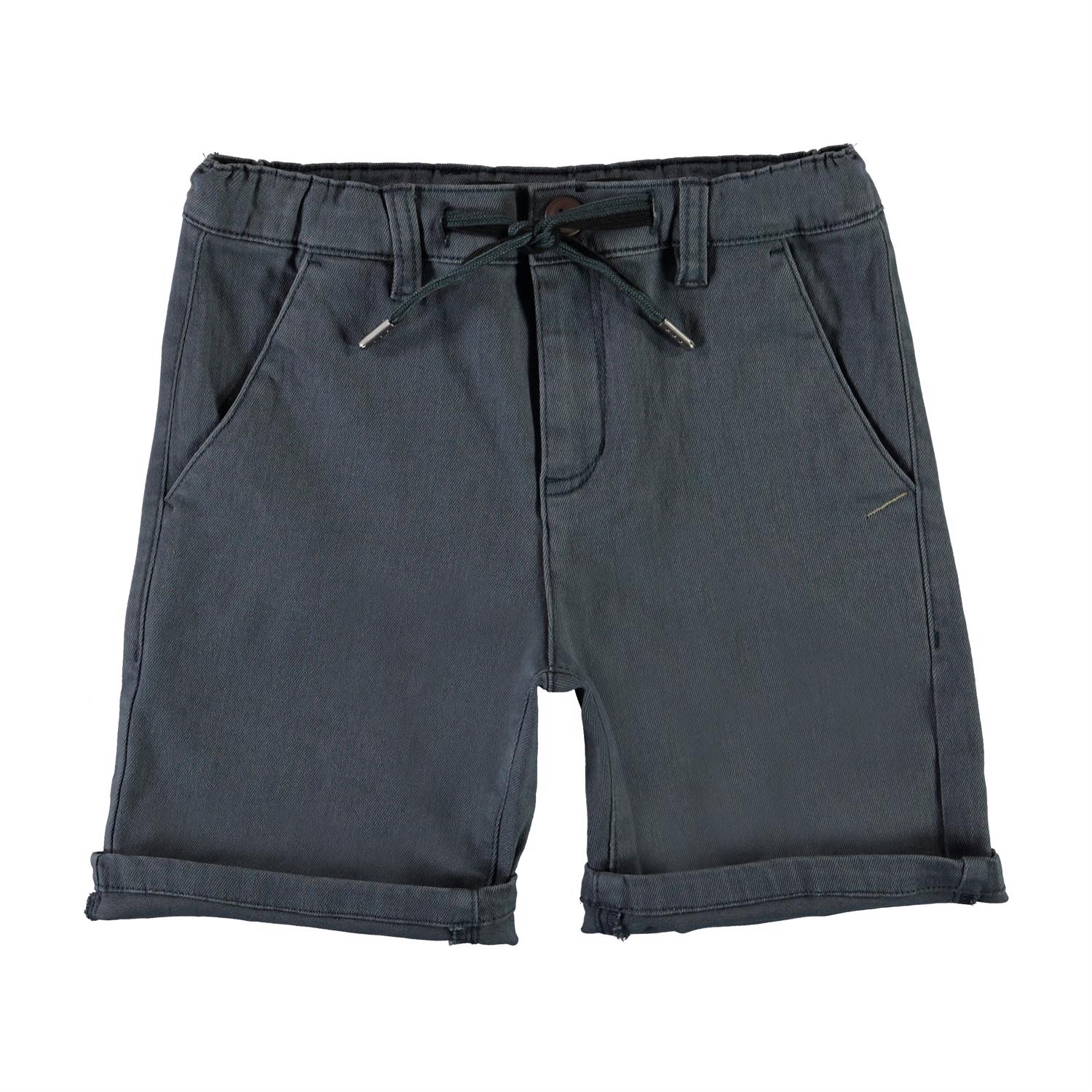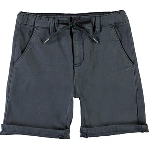 Ajvin is een blauwe chino short met zakken en koordjes in de taille.