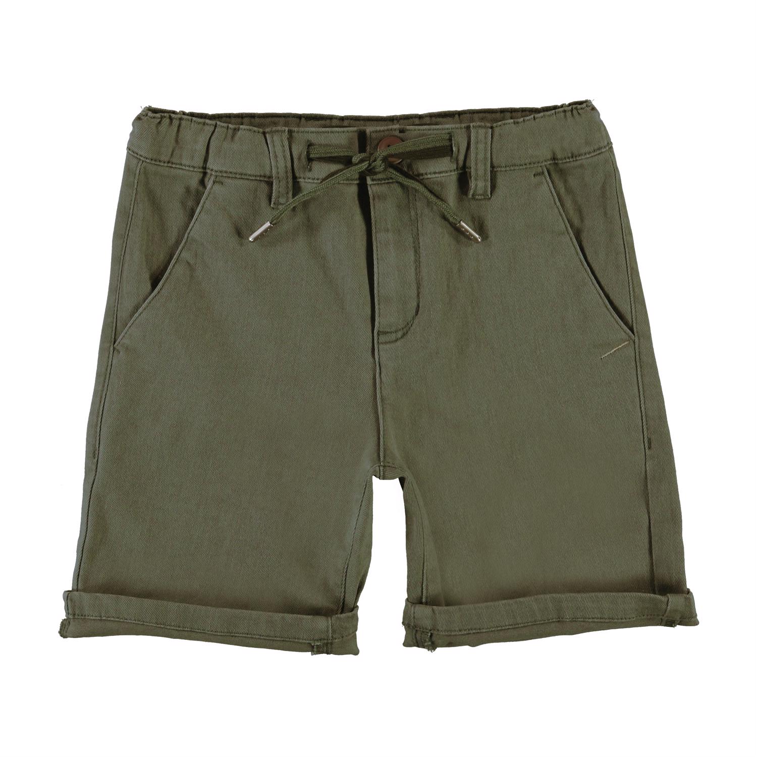 Ajvin is een kakigroen chino short met zakken en koordjes in de taille.