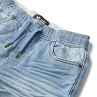Ali is een korte broek waarin alle beste eigenschappen zijn gecombineerd tot één zeer comfortabele korte spijkerbroek in het blauw. De korte broek heeft een brede elastische tailleband met koordjes en licht wijde pijpen.