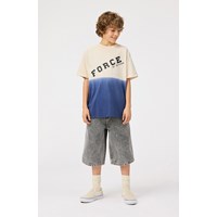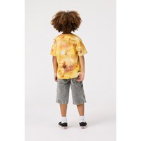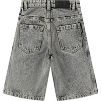 Grijze korte spijkerbroek van biologisch katoen. De spijkerbroek heeft een ruimvallende pasvorm, reikt tot aan de scheenbenen en heeft zakken aan de zijkanten en achterzakken.De tailleband kan worden aangepast met een interne elastiek, waardoor een perfecte pasvorm voor alle kinderen wordt gegarandeerd. De maten 92-134 hebben een drukknoop, waardoor de korte broek gemakkelijk aan en uit te trekken is, terwijl de maten 140-176 een normale jeansknoop hebben.