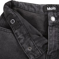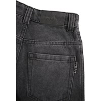 Korte spijkerbroek in een zwarte wassing gemaakt van biologisch katoen. De korte spijkerbroek heeft een relaxte ruimvallende pasvorm die tot aan de schenen komt en het heeft zijzakken en achterzakken.