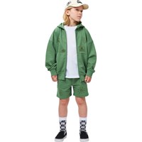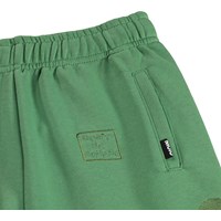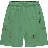 Groene beige shorts met een tint op tint geborduurde symbolen en uitspraken gemaakt van zacht biologisch katoenen jersey. Het model heeft een elastische taille met een verstelbaar koordje, zijzakken en een ruimvallende en relaxte pasvorm.